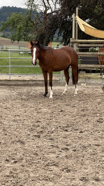 Zu verkaufen: wunderschöne 4-jährige Sportponystute mit viel Potential. Aktuell ca. 140cm gross. Ihre Mutter Springpony (145cm) verhalf mir in meiner Jugend zu mehreren Klassierungen und Erfahrungen im Springsport. Ihr Vater, FS Next Diamond, ein Dressurgezogener Hengst (147cm) vererbt Ihr schöne Grundgangarten. Navina ist seit Geburt in meinem Besitz und hat bereits von Tag eins alles wichtige für die Zukunft gelernt. Sie kann bereits Hufe auskratzen, longieren (mit Sattel und Zaum), kennt den Regenschirm und man kann sie überall berühren. Navina ist bereits jetzt ein richtiges Verlasspferd. Sie liebt Kinder und lässt sich gerne betüdeln, steht ruhig am Anbindeplatz und duschen ist für sie bekannt. Aktuell wird sie schonend an den Reiter gewöhnt und möchte immer gefallen. Ich suche für die Navina eine Familie die gerne zusammen mit Ihr wachsen möchte. Navina liegt mir sehr am Herzen und wird nur in beste Hände verkauft. Ebenfalls würde das Angebot stehen, dass ich bei der weiteren Ausbildung behilflich bin. Preis VHB. (Platz vor Preis)