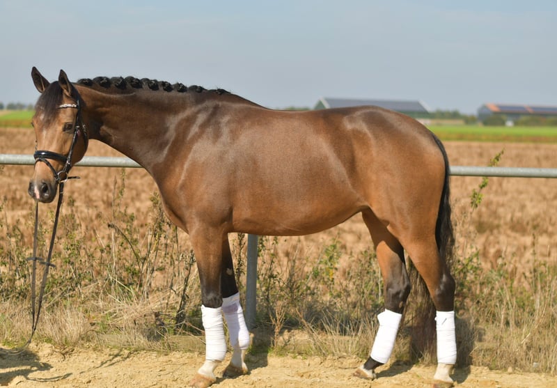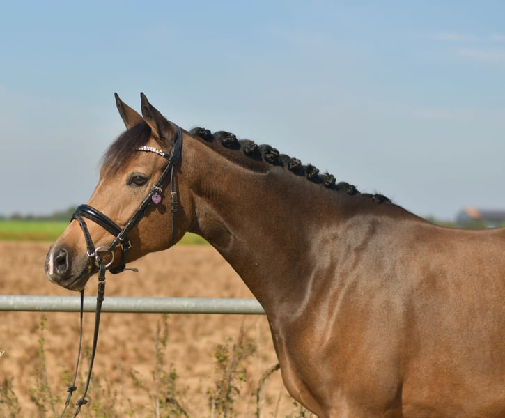 Wir bieten die bezaubernde 4-jährige Niederländische Reitponystute „Aphrodite“ zum Verkauf an! Mit einer Größe von 1,51 m ist sie die ideale Größe für Kinder und Anfänger. **Highlights:** - **Kinderlieb und Anfänger tauglich:** Aphrodite ist äußerst umgänglich und eignet sich perfekt für junge Reiter oder Reiteinsteiger. - **Geländetauglich:** Sie läuft sehr brav im Gelände und ist dabei super unerschrocken und cool. - **Sozialverträglich:** Verträgt sich bestens mit Artgenossen und ist in der Herde ein echter Schatz. - **Gesundheit:** Aktueller Röntgentüv ohne Befund vorhanden, was für ihre hervorragende Gesundheit spricht. - **Vielseitig:** Sie springt gerne mal einen Sprung und ist dressurmäßig gut ausgebildet. Wir haben bereits mit dem Außengalopp und einfachen Wechseln begonnen. Wir laden Sie herzlich ein, Aphrodite bei uns auszuprobieren. Probereiten oder Vorführen wird mit 30 € vergütet, die selbstverständlich beim Kauf zurückerstattet werden. Lassen Sie sich diese Chance nicht entgehen, eine so liebevolle und talentierte Ponystute zu erwerben! Bei Interesse oder Fragen stehen wir Ihnen gerne zur Verfügung.