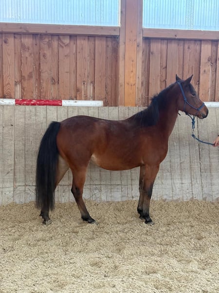 Loving Pony Mare (2021) – lively, eager to learn, and with an excellent character Our beautiful pony mare, born in 2021, is looking for a new home. She has grown up on our farm and is familiar with daily handling, various environmental influences, and social contact with other horses. She is very compatible within the herd. She knows both open stable and box stall management. Groundwork is well established; she is familiar with lunging (including with a saddle) and always shows attentiveness and motivation during training. The mare is well-behaved in handling, accustomed to the farrier and veterinarian, and has been regularly vaccinated, dewormed, and her teeth checked. In terms of temperament, she is lively, curious, and highly trainable – a wonderful partner for someone interested in further training. She is currently not yet ridden but has excellent prerequisites for versatile development. A healthy, spirited young horse with potential and charm – ready to find a caring and experienced owner.