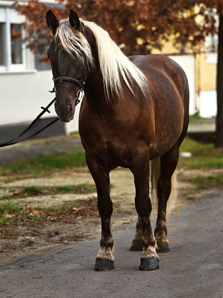 Zsuzsi – 155 cm wzrostu, spokojna klacz, wszechstronnie nadająca się do jazdy i ujeżdżania Zsuzsi to pełna miłości, przywiązana do człowieka koń, która wyróżnia się cierpliwością i równowagą. Ma harmonijną budowę ciała i poprawny chód, co zapewnia jeźdźcowi poczucie bezpieczeństwa, dlatego doskonale sprawdza się jako koń rekreacyjny i rodzinny. Obszary zastosowania: Podczas jazdy jest spokojna, dobrze kierowana i utrzymuje równomierne tempo we wszystkich trzech chodach podstawowych. Zarówno na placu, jak i w terenie, jest niezawodna i odważna, co czyni ją odpowiednią także dla dzieci. Podczas jazdy w zaprzęgu jest spokojna i pewna siebie, nie da się jej zdenerwować ruchem ulicznym ani innymi bodźcami zewnętrznymi. Przy lekkim powozie pracuje niezawodnie i jest idealnym partnerem na rodzinne wyjazdy. Wiek: Zsuzsi ma 4,5 roku i w marcu skończy 5 lat. Pomimo młodego wieku jest inteligentna, chętna do nauki i pracuje spokojnie. Codzienna obsługa: Łatwa w obsłudze i cierpliwa. Spokojnie stoi podczas pielęgnacji, chętnie oddaje kopyta i bez problemu prowadzi się na uwięzi oraz przywiązuje. Charakter: Przyjazna, nie dominująca i towarzyska wobec innych koni. W nowych sytuacjach rozważna i współpracująca z ludźmi. Stan zdrowia: Regularnie pielęgnowana, zdrowa, z paszportem koni, aktualnymi szczepieniami i świeżymi badaniami krwi. Zsuzsi to pełna miłości i wszechstronna klacz, która jest pewnym wyborem dla dzieci, rodzin oraz wszystkich poszukujących spokojnego i niezawodnego konia. +48 176 401 77 89