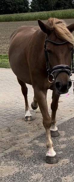 Nach langer Überlegung habe ich mich schweren Herzens dazu entschieden aus privaten Gründen für mein Pony Lotte ein liebevolles neues Zuhause zu suchen. Lotte ist ein total süßes und neugieriges Pony. Mit viel Zeit und Geduld wird sie bestimmt mal ein ganz toller Freizeitpartner. Leider kann ich ihr nicht die Aufmerksamkeit schenken, die sie braucht um Vertrauen zu fassen. Sie ist bereits geritten, aber momentan nicht im Training. Deswegen ist ein Probereiten nicht möglich. Ihr Problem ist das Aufsteigen sie ist sehr skeptisch und ängstlich. Wenn man einmal auf ihr sitzt, ist alles gut . Böse wird sie dabei nicht ist aber unsicher und angespannt. Unter dem Reiter hat Sie noch nie gebockt oder sonst was in der Art. Sie ist sehr schön zu reiten und versucht alles richtig zu machen . Durch ihren Körperbau deckt sie auch einen Erwachsenen Reiter gut ab. Im Gelände zeigt sie sich für ihr Alter unerschrocken( kein Losrennen, Bocken oder Wegspringen). Sie kennt das Arbeiten vom Boden aus und ist dabei sehr aufmerksam und gelehrig. Bei mir steht sie im Offenstall mit meiner Stute und einem Shetty und ist eher rangniedrig. Lotte ist bei mir nie krank gewesen. Auf Anfrage schicke ich gerne Videos unterm Sattel.