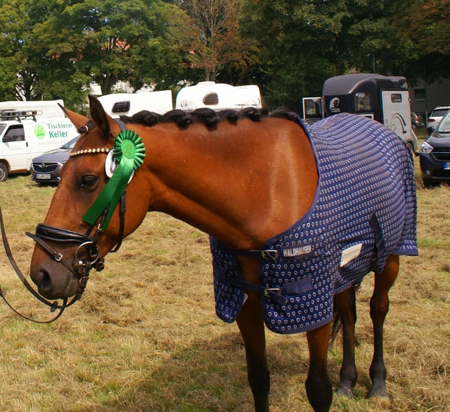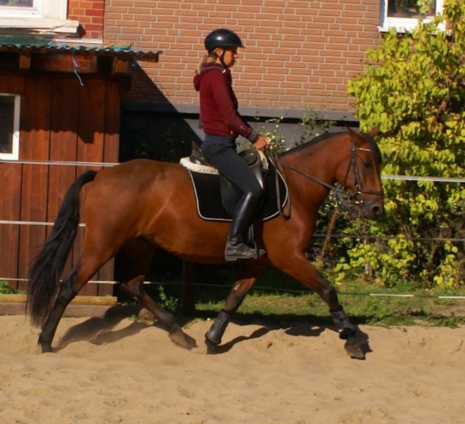 Tolles Allrounder Pony, ob gemütlich im Gelände, Galopp auf dem Stoppelfeld oder auf dem Turnier, diese Stute ist immer lieb, unerschrocken und auch noch super im Umgang, Reiterwettbewerb WBO platziert, tolle Bewegungen, rittig, leicht in der Anlehnung zu reiten, Potential für mehr, Pass ohne Abstammung
