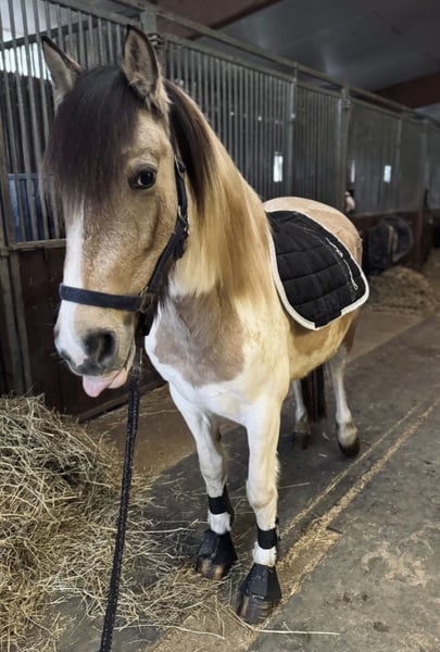 Kucykowa klacz, 5-letnia, szuka kochającego domu. Imię: Betty Kolor: Łaciatka beżowo-biała Wzrost: około 147 cm Wiek: 5 lat Płeć: klacz Urocza Betty przyciąga wzrok i zachwyca swoim łagodnym, pewnym siebie charakterem. Charakter: * Kochana, niezawodna i odważna * Na początku nieco nieśmiała i potrzebuje czasu, aby zaufać Stopniowo buduje silną więź ze swoją opiekunką Szczególne cechy: * Bezproblemowa w obsłudze na boso i podczas czyszczenia kopyt * Chętnie współpracuje podczas załadunku i jest posłuszna w codziennym kontakcie * Idealna dla jeźdźców rekreacyjnych szukających wrażliwej i wiernej partnerki Dla Betty marzę o kochającym domu, gdzie ktoś doceni jej łagodny charakter, a jednocześnie będzie ją dalej rozwijał. Dostępne są filmy z jazdy oraz więcej zdjęć. W razie zainteresowania lub pytań chętnie służę pomocą.
