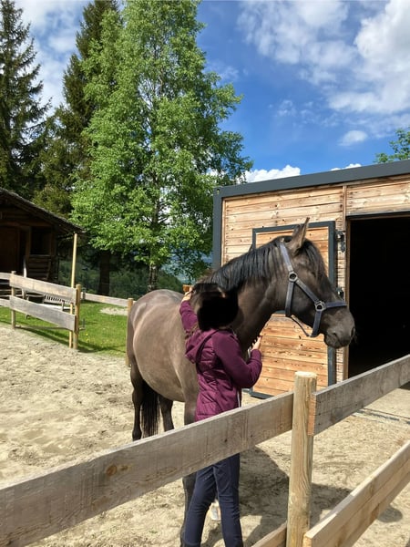 📍 Name: Cappucino 📏 Stockmaß: ca. 1,45 m 🐴 Rasse: Pony 🎯 Einsatzbereich: Freizeit, Therapie, Reitschule, Familienpony Unsere wunderschöne und besonders liebenswerte Stute Cappucino sucht ein neues Zuhause. Sie überzeugt nicht nur optisch, sondern auch durch ihr Wesen - ihre ruhige, ausgeglichene Art, die sie zu einem echten Verlasspony macht. 💛 Charakter: Cappuccino ist sehr zutraulich, verschmust und kinderlieb. Sie lässt sich problemlos von Kindern putzen, führen und reiten – ideal also für Therapieangebote, Reitschulen oder Familien mit Kindern. Auch im Umgang mit ungeübten Reiterinnen zeigt sie sich stets geduldig und zuverlässig. 🏡 Haltung & Herde: Leider kommt Cappuccino bei uns nicht gut mit unseren Shetlandponys im Offenstall zurecht. In einer gemischten Herde oder mit größeren Ponys/Pferden fühlt sie sich dagegen sehr wohl. Das hat sie diesen Sommer bei ihrem Einsatz in der Reitschule bewiesen. 🎯 Besonderheiten: ✅ Absolut brav im Umgang ✅ Kinderlieb & anfängergeeignet ✅ Eignet sich hervorragend für Therapie- oder Schulbetrieb ✅ Verlasspony 📞 Kontakt: Bei Interesse oder weiteren Fragen freuen wir uns über eine Nachricht oder einen Anruf!