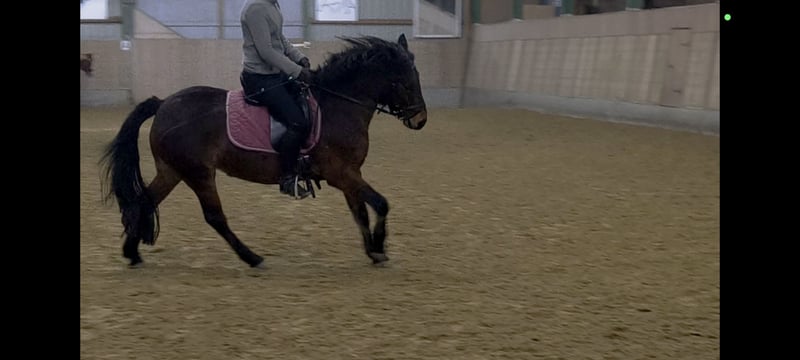 Talented Pony Mare Looking for a New Home Stella is a 9-year-old pony mare that we purchased three years ago to be backed for our daughter. She is gentle in handling, leads nicely on the lunge, and can be used for "turnout" / vaulting. She enjoys groundwork and free jumping. She has excellent gaits and was only recently started under saddle. After careful consideration, we have decided to sell Stella, as she is not suitable for beginner riders. She needs a rider who is confident and assertive. She can become spirited and may bolt if a beginner rides her. She is sensitive to other horses approaching too closely, which can make beginner lessons challenging if children are not attentive to maintaining proper distances. Her canter is still somewhat insecure; she tends to "pop in" when transitioning to the canter, and occasionally she falls out to the outside canter. In the arena, she can be a bit fidgety at first but settles after a few minutes. She has not yet been ridden alone in the field. Unfortunately, we lack the time and the experienced rider needed to further train her in jumping. Overall, we simply do not have enough time for Stella, so we are looking for a youth rider who suits her better. She is healthy, barefoot, knows how to travel in a trailer, and is good with the farrier and veterinarian. This summer, she developed some minor skin irritation, likely due to the standing water next to the pasture, which was not an issue in previous years. We have not yet put a rug on her. She does not tolerate changing riders well, so no riding school or group lessons. Stella is very intelligent — a pony mare, sometimes a bit sassy. Therefore, experienced horsepeople or riding parents are a must for support. We purchased her from a stable where she was kept in a box. At our place, she is turned out 24/7 in summer and for a few hours in winter. Due to her previous box upbringing, she is somewhat sensitive to other horses approaching too closely, but this has improved significantly with us. I can gladly send videos of her under saddle personally. Priority goes to the right home over price.