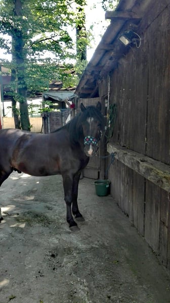 **For Sale: Charming Gelding Looking for a New Home!** We are seeking a new home for our beloved gelding! - **Breed:** Ponies / Small Horses - **Year of Birth:** 2015 - **Color:** Brown - **Height:** 13.7 hh (137 cm) - **Discipline:** Leisure riding This friendly gelding is perfect for relaxed rides and shared leisure activities. He has a gentle nature and is easy to handle. He can be ridden by experienced children, but he is not suitable for beginners, as he expects clear guidance from his rider. Benno was backed at age 4. His motivation on the riding arena or in the indoor school is not as high as in the terrain. He rides alone and in groups, always eager to be at the front. He is fearless when it comes to everything the world has to offer, whether it’s a tractor or a flock of sheep. He has been extensively ground-worked, lunged with a double longe, and driven from below. Pulling tires and sleds is no problem for him. Benno is regularly vaccinated, trimmed every 4 weeks, and shows impeccable behavior at the vet and farrier. He is accustomed to trailer loading and loads reasonably well. He is a solidly built pony and comfortably carries riders up to 165 cm (16.1 hh). About a year ago, we started retraining him in Western riding, which he enthusiastically embraces. Benno has been in herds with mares, geldings, and mixed groups. In all situations, he tends to take the lead. Unfortunately, this wonderful pony has equine asthma and reacts to dust and beech trees. Currently, he is kept in a box with forest floor bedding and has 24/7 access to a paddock. His hay is soaked to prevent symptoms, and he is symptom-free. When beech trees are in bloom, he coughs more; inhalation with saline helps to loosen secretions. Since beech trees are present on our property and especially near the ponies, Benno cannot avoid his allergen, and we have therefore decided to find him a new home. He should have access to a paddock or be kept in an open stable. There should be no beech trees nearby, and proximity to a lake would be ideal for him. Benno is not currently in training due to lack of time, but he can be tried under saddle. This is not an urgent sale. Benno will not be sold to dealers or riding schools. If you are interested or would like more information, we look forward to hearing from you! To prevent misuse by riding facilities, we charge €40 for riding, which will be refunded upon purchase.