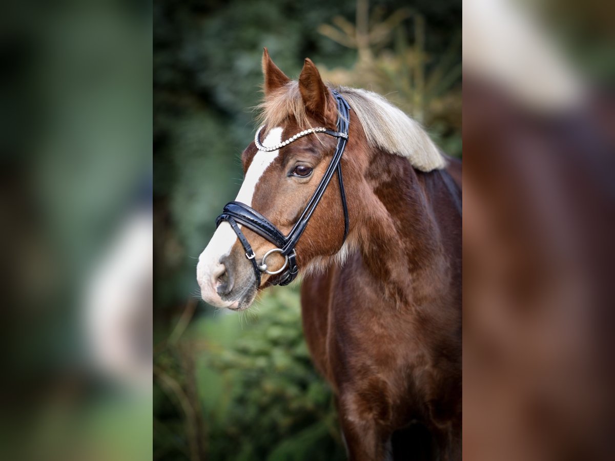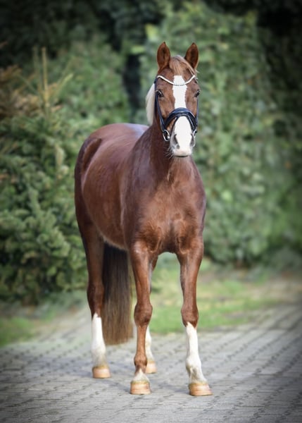 Wunderschöne Ponystute sucht neues Zuhause! Sie ist eine 12 jährige ca 148cm große Welsh Stute mit vollem Papier abstammend von Leuns Veld Zandro x Kooihuster Folkert (Downland Folklore). Dewi hat einen eigenen Charakter und muss ihren Menschen erstmal kennenlernen bevor sie auftaut. Sie ist anfangs eher stutig und kann schon mal frech aus der Wäsche schauen. Deshalb wird sie nicht als Kinderpony abgegeben. Sicher reitende Jugendliche kommen aber gut mit ihr zurecht. Dewi hat schöne Bewegungen und ist ein echt sportliches Pony. Sie ist nicht umweltorientiert oder schreckhaft. Und geht auch ins Gelände. Wird bei uns zurzeit eher dressurmäßig gearbeitet. Macht aber auch einen schönen Sprung. Durch ihre Größe deckt sie sehr gut auch größere Reiter ab. Sie ist barhuf, Schmiede und verladefromm.