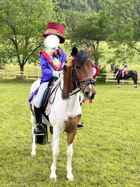 Für unseren wunderbaren Pony Wallach suchen wir ein neues Zuhause, wo er wieder ein Kind glücklich machen darf. Nach einer wunderschönen Zeit von der Führzügel bis zur Pony L, von Ausritten bis zur Geländestrecke, von Longenstunden bis zur Musikkür ist unsere Zeit wegen der Größe meines Sohnes jetzt leider vorbei. Deswegen verkaufen wir unser Pony mit einem Herzen aus Gold, einer Leidenschaft für die Dressur und dem großen Auftritt. Von 21 Starts in der Dressur kann er sich 20 Platzierungen und einige Siege auf die Fahne schreiben. Er ist das perfekte Pony für den Turniereinstieg. Er geht sicher in der A Dressur und ist sehr gut ausgebildet bis zu einfachen L Lektionen. Er liebt aber auch das Ausreiten und macht brav bei der Stangenarbeit mit. Sogar bei der Working Equitation hat er schon geschnuppert. Er ist sehr sozial, versteht sich prima mit anderen Pferden und kennt sowohl Offenstall als auch Boxenhaltung mit Weide und Paddock. Er geht barhuf, läuft brav auf den Hänger und ist super gesund. Impfungen sind selbstverständlich gemacht und Zahnarzt und Osteopath haben ihn auch regelmäßig besucht. Röntgenbilder von 2021 ohne Befund sind vorhanden. Wir freuen uns sehr auf passende Anfragen und ein liebesvolles Zuhause für dieses tolle Kinderpony.