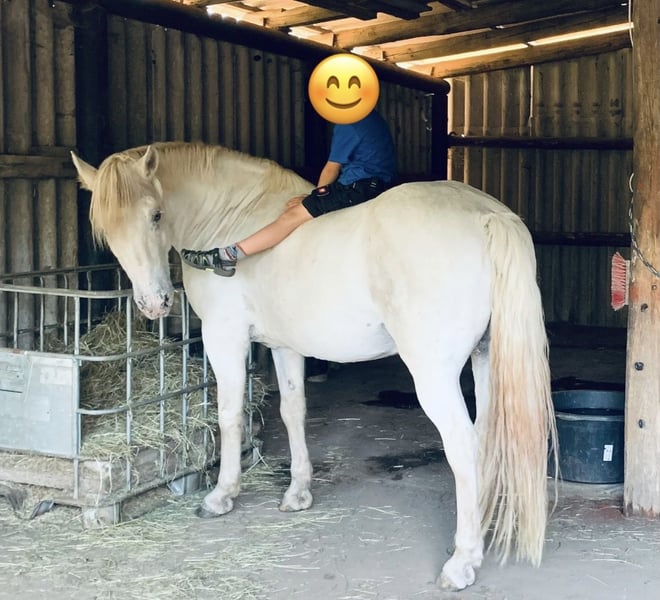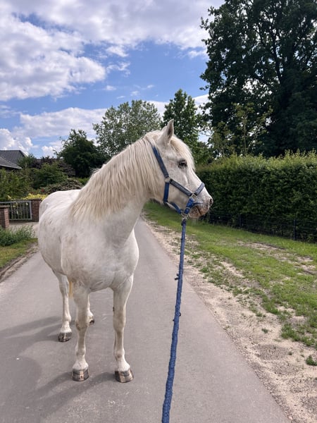 Verkaufe meinen charmanten Schimmel-Wallach, geb. 2012, mit einem Stockmaß von circa 150 cm. Dieses freundliche Kleinpferd eignet sich hervorragend für die Freizeitgestaltung und ist ideal für Reiter, die ein zuverlässiges und angenehmes Pferd suchen. „Fredi“ ist stets gesund und hat ein angenehmes, beruhigendes Wesen. Er liebt es, mit Mensch und Hund oder auch den Weidekumpels durch Wald und Wiesen zu spazieren, genießt es merklich und strahlt eine ungeheure Ruhe aus - gerade auch auf Kinder! Er kennt jegliche Form von Landwirtschaftsgeräten und Fahrzeugen, wobei eine Mülltonne schon mal unheimlich sein kann ;-) Als rangniedriger Genosse ist er sehr entspannt mit allem, was um ihn herum passiert. Aktuell ist er eine Weile nicht bewegt worden und stand mit seinen Stuten 24/7 im Offenstall/Weide, sodass er ein wenig bequem geworden ist. Gern können wir einen Kennenlerntermin vereinbaren, er freut sich bestimmt, wenn sich jemand findet, der mehr Zeit für ihn hat, als ich..