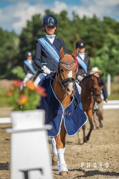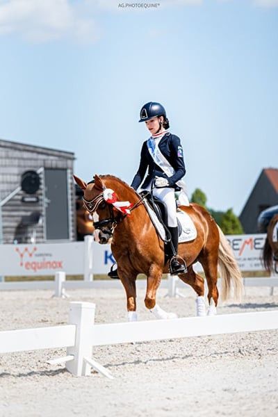 Erfahrener Pony für Kinder, mehrfacher Medaillengewinner bei nationalen Turnieren im Dressur, darunter polnischer Meisterschaften und Polpokal. Sehr brav und zuverlässig, ideal für den Einstieg in den Turniersport für einen Nachwuchsreiter oder Junioren. Mit Potenzial, bei großen nationalen und regionalen Wettbewerben Medaillen zu gewinnen. Zu den größten Erfolgen zählt der Titel Vizepolnischer Meister der Junioren auf Ponys im Jahr 2024 in den Dressurprogrammen der Klasse N sowie im Freestyle KUR, auf dem Niveau der Europameisterschaften. Multimedalist bei den polnischen Meisterschaften und Pokalturnieren in den Jahren 2021 bis 2025 in der Kategorie Junioren (Jung- und Junioren). Ununterbrochen bei acht aufeinanderfolgenden Polnischen Meisterschaften und Pokalturnieren stets auf Medaillenkurs: 2021 – 5. Platz bei den Polnischen Meisterschaften (OOM) 2022 – 3. Platz bei den Polnischen Meisterschaften (OOM) 2023 – 2. Platz bei den Polnischen Meisterschaften (OOM) 2024 – 2. Platz bei den Polnischen Juniorenmeisterschaften 2021 – 4. Platz beim Polnischen Pokal 2021 – 2. Platz beim Polnischen Pokal 2022 – 2. Platz beim Polnischen Pokal 2022 – 2. Platz beim Polnischen Pokal 2023 – 2. Platz beim Polnischen Pokal 2025 – 3. Platz beim Polnischen Pokal Bergs (ehemals AAD) ist ein erfahrener 14-jähriger Wallach, einer der erfolgreichsten Dressurponys in Polen. Meister im Vierkampf, mit großem Herz und vollem Vertrauen zum Reiter. Nur für Kinder geritten, nie von Trainern oder anderen Turnierteilnehmern „übernommen“, ausgebildet bis zur Klasse N. Hat nie eine Eliminierung oder Aufgabe im Turnier erlebt. Regelmäßig auf N- und P-Niveau am Start, mit sehr guten Bewertungen – über 75 % im Finale der OOM 2023 sowie knapp 70 % bei den N-7 KUR bei den polnischen Juniorenmeisterschaften 2024. Perfekt geeignet für Nachwuchsreiter oder Junioren für den Einstieg in nationale und regionale Turniere. Problemlos im Umgang, ruhig bei allen Behandlungen (Hufschmied, Impfung). Kein Problem beim Verladen. Gesund, ohne Hitzigkeit, regelmäßig geimpft und entwurmt. Verkauf wegen des Wachstums der Turnierreiterin, nur in verantwortungsvolle Hände, keine Pacht möglich. Weitere Erfolge umfassen unter anderem: 1. Platz bei den Meisterschaften der Wojewodschaft Kujawien-Pommern 2019 1. Platz bei den Meisterschaften der Wojewodschaft Kujawien-Pommern 2020 1. Platz bei den Meisterschaften der Wojewodschaft Kujawien-Pommern 2021 1. Platz bei den Meisterschaften der Wojewodschaft Kujawien-Pommern 2022 1. Platz bei den Nordpolnischen Meisterschaften 2020 1. Platz bei den Nordpolnischen Meisterschaften 2021 1. Platz bei den Nordpolnischen Meisterschaften 2022 1. Platz bei den Nordpolnischen Meisterschaften 2023 2. Platz – Vize-Makroregionenmeister 2020 1. Platz – Makroregionenmeister 2021 1. Platz – Makroregionenmeister 2022 Zudem zahlreiche Siege bei P- und N-Turnieren zwischen 2019 und 2025. SPORTLICHE ERGEBNISSE: https://livejumping.com/ap/search/all/Bergs%20(EX%20aad) Polnische Meisterschaften (OOM) Radzionków 2023: https://youtu.be/aMnyFIqT7tM Polnischer Pokal – Barłomino 2023: https://www.instagram.com/reel/CumCL9Yg2Yb/