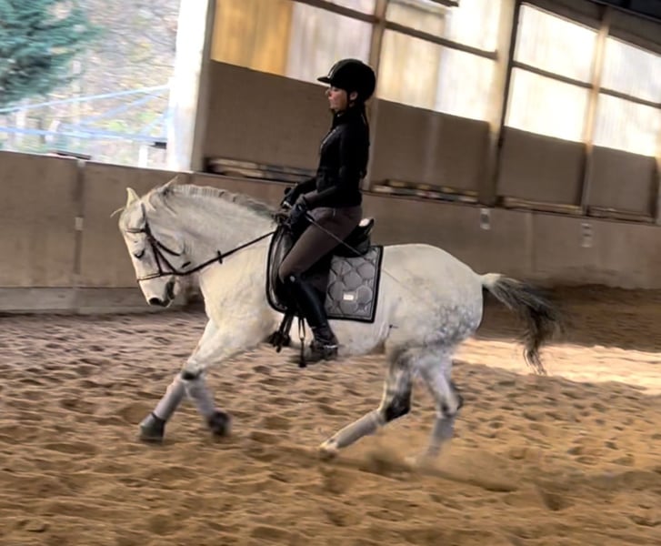 Beautiful young prince gelding, currently 14 years old and standing at 14.6 hh, seeking a new home for sport or leisure riding. He is solidly trained up to elementary dressage level and can be guided effortlessly and steadily in a flying change outside. He is well-mannered, loads easily into the horse trailer, and is sound for the farrier. He is currently located in Vienna in the Prater and can be viewed at any time. I am happy to send additional videos upon request.