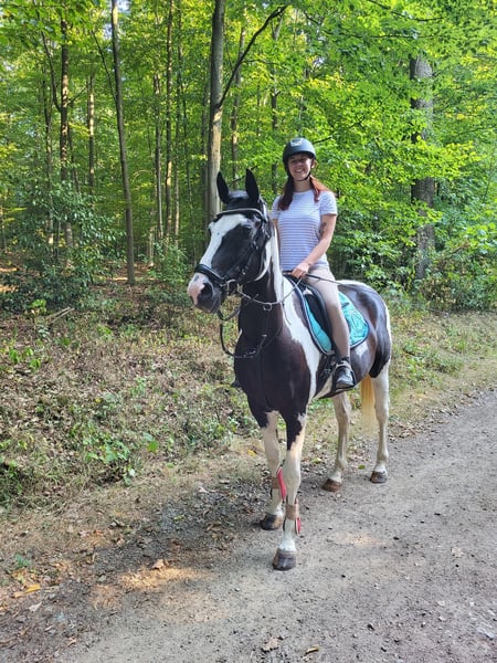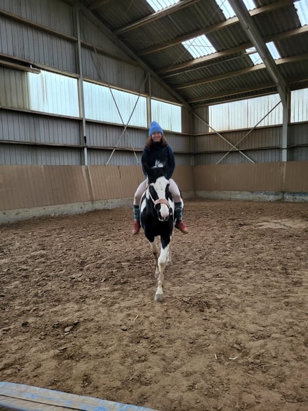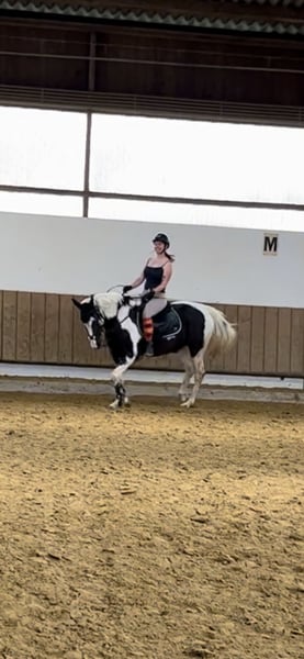 Wir verkaufen unseren 18 Jährigen Wallach. Da er rangniedrig ist steht er in einer Box, im Sommer aber immer mit zwei anderen Pferden auf der Wiese. Wir hatten ihn zuerst im Offenstall stehen, da wurde er aber von den anderen Pferden gemobbt. Er wehrt sich nicht und lässt alles mit sich machen. Beim Putzen und beim Hufschmied ist er brav. Meistens geht er auch bei dem zweiten Versuch auf den Hänger. Die Pferdewaage kennt er auch. Man kann ihn auch super als Handpferd nehmen. Halle und Platz kennt er, Gelände geht er nur mit anderen. Er ist kein Anfänger Pferd und braucht einen Reiter der ihm Sicherheit gibt. Zu Beginn testet er besonders im Gallopp die reiterlichen Fähigkeiten aus. Man kann mit ihm Boden/ bzw. Stangenarbeit machen, longieren, springen und Dressur reiten. Das reiten mit Pad oder ohne Sattel ist er auch gewöhnt. Wir haben auch schon vermehrt an working equitation Lehrgängen teilgenommen.