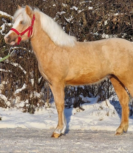 Dreamy Palomino Welsh Cross Pony! Our Daylight is an absolute dream ❤️ He is a 4-year-old gelding standing at 125 cm. He has been ridden and driven for leisure. He is incredibly gentle and well-behaved, and even the smallest children can groom, lead, and ride him with care. Riding videos with a 7-year-old child are naturally available. He stands quietly during grooming and willingly gives all four hooves. Anyone familiar with our ponies knows how wonderful and sweet they are. Most of them are used in riding schools, therapy programs, or work with children aged 1 to 10 years. Feel free to come and see him in person or, if visiting isn’t possible, we can organize transportation, video calls, photos, and videos—whatever you need. 🤗 He can be visited at any time.