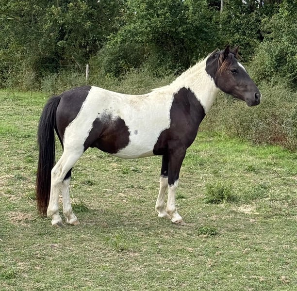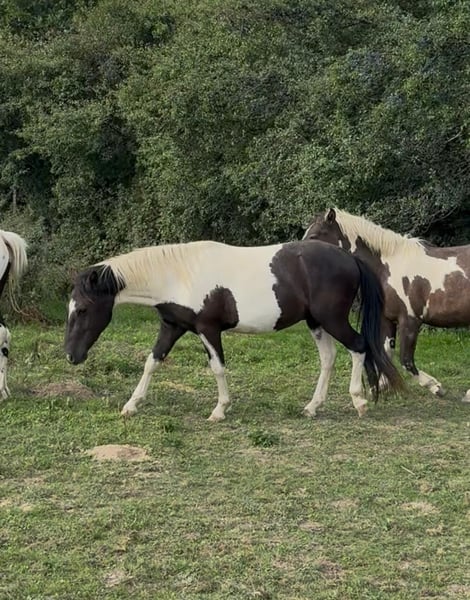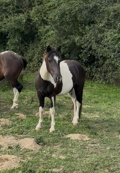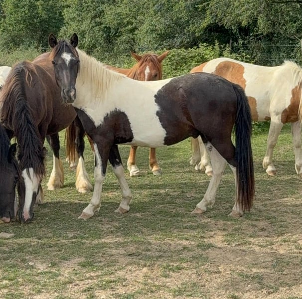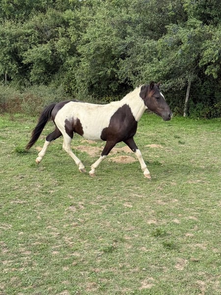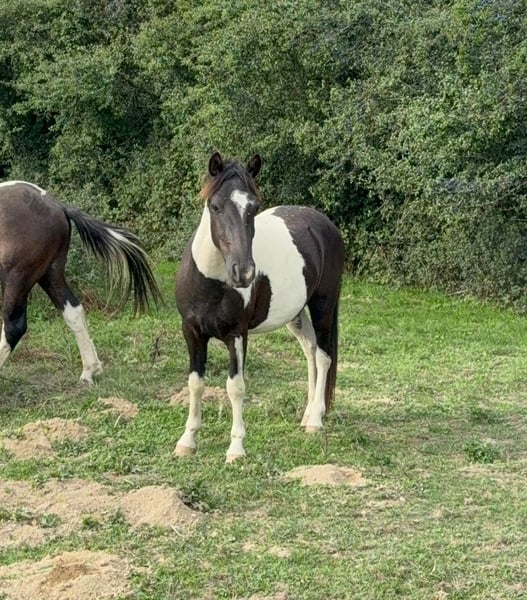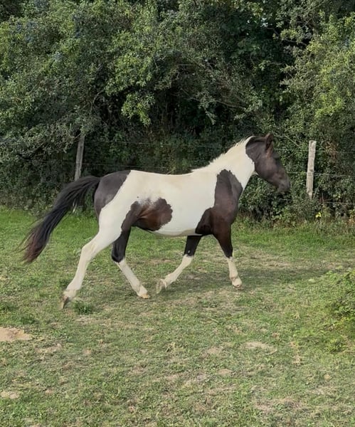For sale is a 2-year-old pinto gelding. Estimated height at maturity is approximately 137 cm. He was raised appropriately in a herd and is very people-oriented. He is well-behaved and halter-trained. His hooves have been regularly trimmed and recently done, and he has already been loaded onto a trailer several times. With proper training, he will surely make a wonderful family pony. No known illnesses or allergies. A veterinary examination (AKU) can be arranged upon request. Please feel free to call or send a message to 0157 36803742. All information is provided without guarantee; subject to price changes. Transportation can be arranged, and online purchase is possible.