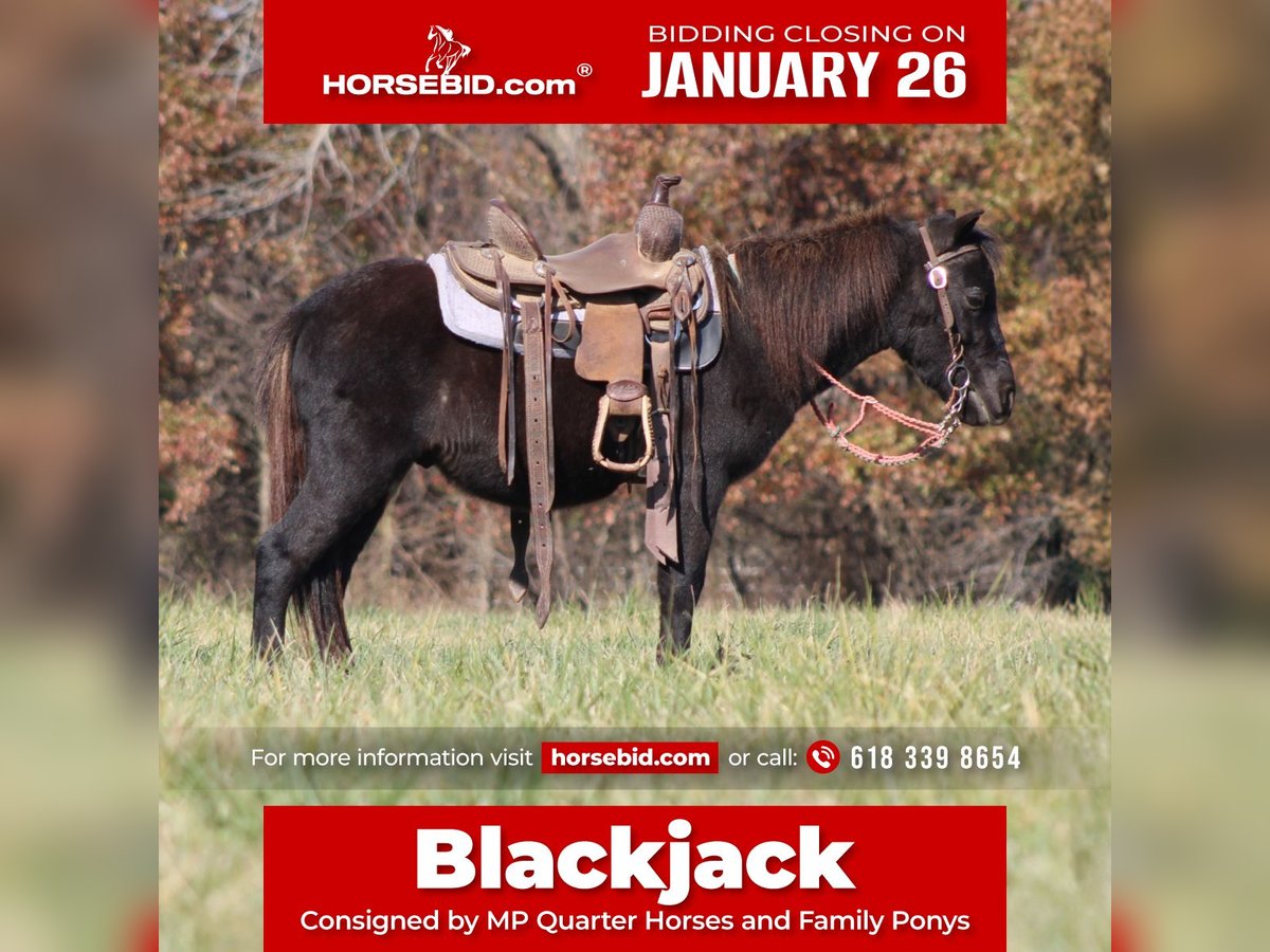 𝐉𝐀𝐍𝐔𝐀𝐑𝐘 ⭐️𝑨𝒍𝒍 𝑺𝒕𝒂𝒓 𝑳𝒊𝒏𝒆𝒖𝒑⭐️ Happening now thru MONDAY | JANUARY 26th - Available EXCLUSIVELY on HorseBid's website! For more details and to register visit: www.Horsebid.com CONSIGNOR CONTACT: MP Quarter Horses and Family Ponys 618 339 8654 LOCATION: Brownstown, IL BREED: Pony REGISTERED: No REGISTERED NAME: Blackjack COLOR: Black HEIGHT: 40 in AGE: 4 GENDER: Gelding Blackjack is a 40 inch, 4 year old mini pony gelding that the whole family can enjoy. He is broke for riders of any age and is gentle, patient, and trustworthy every time you lead him out. This is the kind of pony you can put the kids on without worrying and still enjoy riding yourself. He is safe, sane, and confident, sound in every way with no blemishes. Blackjack has been ridden through the woods, down busy city streets, across cow pastures, and even to school, and he takes it all in stride. Traffic does not bother him, livestock does not bother him, and new places do not bother him. He stays calm, steady, and willing, making him a great choice for beginner riders and families wanting a pony that will take care of their kids. Easy to catch, easy to handle, and easy to be around, he has the right mind and a kind disposition. If you are looking for a dependable, family-safe mini pony that has been there and done that, Blackjack is the one you can trust to do his job every day.
