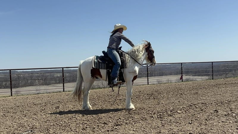 "AVAILABLE ON ONLINE HORSE AUCTION AT www DOT PlatinumEquineAuction DOT com BIDDING OPEN NOW thru SUNDAY | MAY 3RD! *Final price will be determined on auction site* CONSIGNOR CONTACT INFO: Heather Stark 660-953-1476 LOCATION: Princeton, MO JIMMY The kind they all ask for — safe, versatile, and absolutely eye-catching. Jimmy is a 4-year-old Gypsy cross pony standing 13.2 hands tall, and he is truly the total package. He is absolutely stunning with his long, flowing mane and tail, and a kind, gentle expression that draws attention everywhere he goes. Jimmy is 100% sound and has that in-your-pocket personality everyone loves — easy to catch, easy to be around, and a true barn favorite. The kids absolutely adore him, and he genuinely enjoys people. He is as versatile as they come. Jimmy has been trail ridden extensively, hauled on overnight camping trips, and spent two months checking and doctoring cattle. He’s been started in the breakaway, can hold one at the horn, and has experience with cattle sorting, pushing cattle, and brandings. Jimmy has been used as a lesson pony and has been ridden by riders of all ages and experience levels. He is safe, steady, and forgiving. He will: • Ride out alone or in a group • Go through timber, water, and cross creeks • Ride confidently along traffic • Go over small jumps • Ride double with ease • Stay broke even with time off On the ground, Jimmy is just as solid: • Stands for the farrier, grooming, and tacking • Loads and hauls great • Excellent ground manners • Can be kept in a stall or turned out with others We’ve done just about everything with Jimmy, and he continues to prove himself to be a dependable, all-around pony. He’s even been started on laying down. Jimmy is truly one of a kind, and we are excited to find him a loving, forever home where he can continue to be a safe, fun, and reliable partner for his next family. Located in Princeton, Missouri Call or text Heather at 660-953-1476 Shipping available nationwide