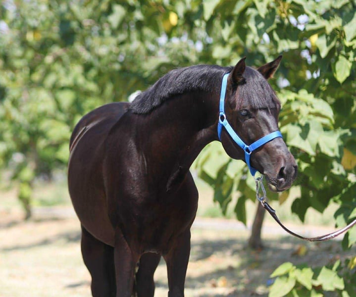 Fegyver 🌄🤩 Fegyver is a stunning 4.5-year-old black gelding standing at 14.5 hands. His elegant appearance turns heads ✨, but what truly makes him special is his character ❤️. He is extremely calm, balanced, friendly, and very people-oriented – he works willingly both from the ground and under saddle 🐎. Despite his young age, he is very intelligent, quick to learn, and always eager to work with his rider. Whether in the field or in the arena, Fegyver remains consistently reliable and confident. He is also a real beauty visually: harmonious conformation, noble head, well-groomed mane and tail, and a shiny black coat. He is regularly vaccinated and dewormed and naturally possesses a horse passport. During grooming and farrier visits, he is well-behaved and uncomplicated. Herd-friendly +49 176 40177894