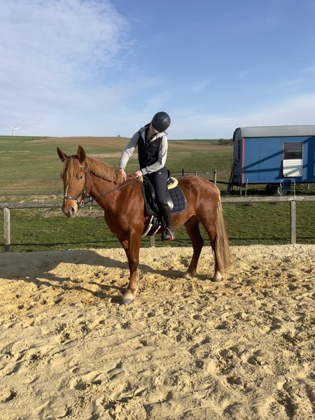 Bildschöner, lieber 4 jähriger Fuchswallach * XXL Pony & Freund fürs Leben Aus gesundheitlichen & damit verbunden zeitlichen Gründen müssen wir uns leider sehr viel eher als geplant von unserem liebenswerten Davy trennen. Davy ist super lieb beim Longieren, im Gelände richtig toll und auch mit Kindern auf seinem Rücken super gelassen. Auch für Boden- oder Stangenarbeit ist er zu haben. In der Dressurarbeit gibt er immer sein Bestes & möchte dem Reiter gefallen. Mit seinen 1,53m ist er ein ganz tolles Familienpony und kann von groß und klein geritten werden. Bei weiterer Ausbildung können wir uns Davy auch im kleineren Tuniersport vorstellen. Für sein Alter ist er super unerschrocken und gibt seinem Menschen ein gutes Vertrauen. Ein echter Schatzmann für alle Lebenslagen. Auch im Umgang ist er super unkompliziert. Davy ist herdenvertraglich, hat aber auch keine Probleme im Stall oder Wiese / Paddock allein zubleiben. Er ist brav beim Schmied, nicht zappelig am Anbinder & insgesamt einfach ein ausgeglichener, robuster Wallach. Suchen Sie einen Freund für alle Lebenslagen? Dann freuen wir uns von Ihnen zu hören. Gerne unter der folgenden Nummer melden : +49 15116538843 Ein Video kann über WhatsApp gesendet werden Aufgrund seines jungen Alters ist ein Probereiten bedingt möglich und wir nehmen 15€ Gebühr die bei einem Kauf erstattet wird
