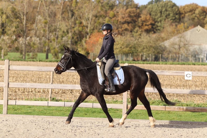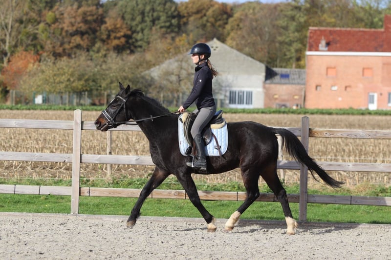 Poney de selle E-pony – Dean (5 ans, 1,54 m) Dean est un adorable et facile à monter poney de 5 ans, mesurant 1,54 m. Il possède un trot confortable et un galop calme, idéal aussi bien en carrière qu’en sortie extérieure. Il n’est pas regardant et se comporte toujours de manière fiable. 💫 S’entend bien avec les autres chevaux 💫 Passe facilement un obstacle 💫 Facile à manipuler, aussi bien au box qu’au pansage 💫 Dossier complet et en ordre En résumé, un poney agréable qui procure du plaisir à son cavalier, prêt à progresser en compétition ou en loisir. 📞 Plus d’informations : +32 475 68 22 43 🎥 Des vidéos sont disponibles sur notre site – n’hésitez pas à nous contacter pour le lien !