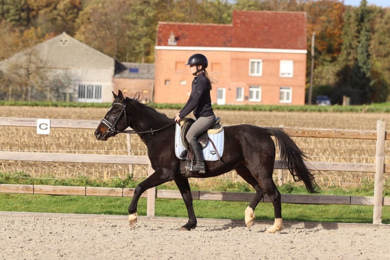 Poney de selle E-pony – Dean (5 ans, 1,54 m) Dean est un adorable et facile à monter poney de 5 ans, mesurant 1,54 m. Il possède un trot confortable et un galop calme, idéal aussi bien en carrière qu’en sortie extérieure. Il n’est pas regardant et se comporte toujours de manière fiable. 💫 S’entend bien avec les autres chevaux 💫 Passe facilement un obstacle 💫 Facile à manipuler, aussi bien au box qu’au pansage 💫 Dossier complet et en ordre En résumé, un poney agréable qui procure du plaisir à son cavalier, prêt à progresser en compétition ou en loisir. 📞 Plus d’informations : +32 475 68 22 43 🎥 Des vidéos sont disponibles sur notre site – n’hésitez pas à nous contacter pour le lien !