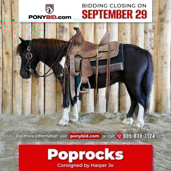 🐴 𝒕𝒉𝒆 𝐅𝐀𝐋𝐋 ℙ𝕆ℕ𝕐 𝑺𝒑𝒆𝒄𝒕𝒂𝒄𝒖𝒍𝒂𝒓🐴 Happening now thru MONDAY | SEPTEMBER 29th - Available EXCLUSIVELY on Ponybid's website! For more details and to register visit: www.Ponybid.com CONSIGNOR CONTACT: Harper Jo 605-838-7124 LOCATION: Corsica, SD BREED: Pony REGISTERED: No COLOR: Paint HEIGHT: 32 inches AGE: 4 GENDER: Gelding Poprocks is a super cool 32 inch 4 year old paint pony gelding, pop rocks is broke to ride and drive and came from an Amish family where he was rode to school and drove to school, he has a super sweet disposition very friendly great for all ages and levels to handle and ride. Great for a lead line but rides independently fantastic a super nice pony that rides better than most big horses a very nice solid pony that any would enjoy.