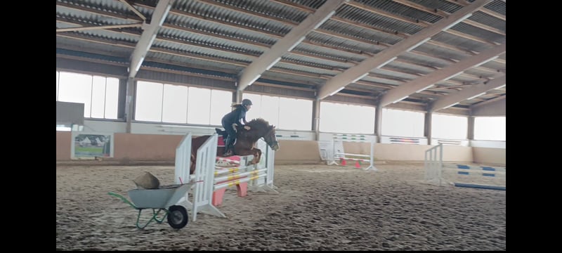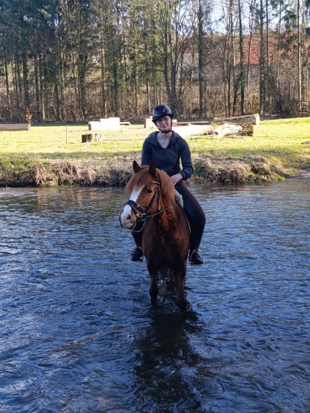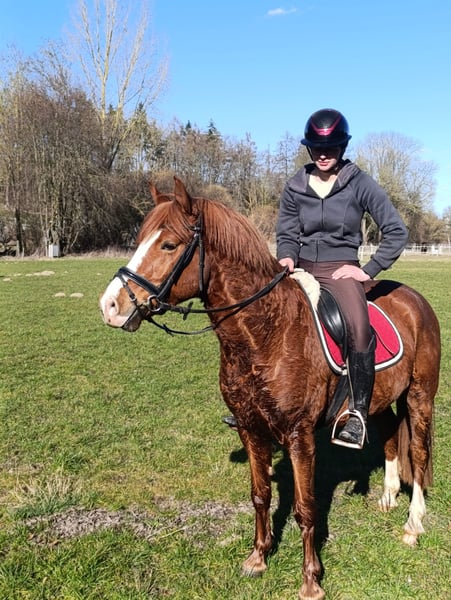 Our school pony Sultan is looking for a new home. He is 6 years old, a gelding, and stands 1.38 meters tall, making him suitable for even taller riders. He enjoys hacking out, is very easy to ride in dressage, and reliably jumps a course at E/A level. An ideal children's pony, although he is currently not suitable for complete beginners. I can easily see him competing in WBO, E jumping, and E dressage. Unfortunately, he is underused in our riding school, so we are offering him for sale. Test rides available at any time! Please contact me for more details!