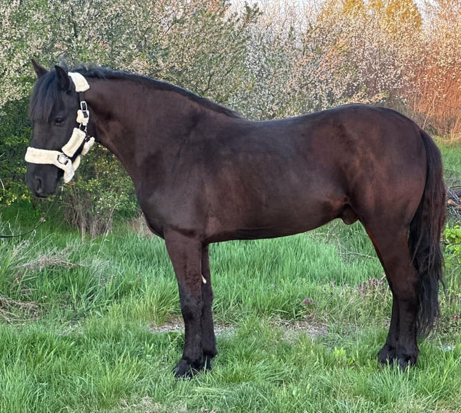 🏵️🌺 Rio 🌺🏵️ Rio es un pony maravilloso. Mide aproximadamente 143 cm y tiene 6 años. No le teme a nada: tractor, bicicleta, coche, todo le resulta familiar. Es muy tranquilo, resistente y completamente sano. Vive en un paddock con otros tres ponis y no muestra ninguna actitud dominante. Puedo recomendarlo con total confianza tanto para principiantes como para terapia ecuestre, ya que su carácter es excepcional. Aquí, varios niños montan a caballo en él; realmente es nuestro pequeño tesoro. Deseamos para Rio un establo cariñoso donde pueda seguir disfrutando de estar rodeado de niños. Conocido personalmente y un pony absolutamente adorable. Al principio algo tímido, pero se adapta rápidamente.