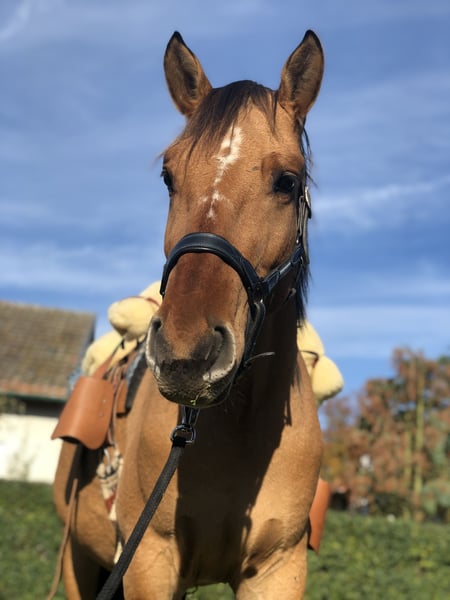 Nous cherchons une famille pour accueillir notre Anton pour toujours. - 6 ans - Environ 1,58 m - Mix - Cheval de Magen (actuellement stable) - Tousse parfois (plus d’informations ci-dessous) Anton est un cheval très fort avec un tempérament parfois incertain. Il a besoin d’un propriétaire expérimenté, capable de poser des limites claires. Lorsqu’il se sent frustré, il mord. Si cela n’est pas stoppé, il peut donner une petite piqûre. Il peut sortir en terrain seul ou en groupe. Anton est extrêmement sensible, attachant et proche de l’homme. Il vient presque toujours vers vous et passe dans le licol. Motivé lors du travail, il questionne toutefois ce qui est nouveau et les nouvelles personnes. C’est pourquoi Anton n’est pas adapté aux débutants et ne sera confié qu’à des cavaliers expérimentés. Il connaît : - 7 jeux (Parelli) - Le longe - Le travail en liberté - La promenade - La monte à main - La selle - La double longe - La manipulation des sabots, etc. Il connaît la selle, le poids et les objets sur le dos. Il marche, trotte et galoppe avec. Il est incertain s’il pourra un jour être monté. Anton trouve la personne sur son dos totalement suspecte et souhaite s’en débarrasser. Avec beaucoup de patience, de confiance et de temps, je pense néanmoins qu’il pourrait devenir un cheval de selle. Une troupe composée uniquement de hongres serait la moins stressante pour lui. Les troupeaux mixtes ne conviennent pas. C’est pourquoi il est également proposé à la vente. À la maison, nous avons deux juments et un autre hongre. Cela ne fonctionne pas et tous les chevaux sont stressés. Il a une ancienne blessure de poulain à l’arrière gauche. Celle-ci a été entièrement examinée par la clinique et, à part une cicatrice esthétique, n’a causé aucun dommage. Les ligaments, tendons, etc., ne sont pas affectés. Toux : Nous ne savons pas pourquoi il tousse. Les poumons sont parfaitement clairs. Le test de fonction pulmonaire était normal. Les biopsies et analyses sanguines n’ont montré aucune anomalie. Aucun lien avec la météo, la saison ou l’exercice n’a été constaté. Prix : place avant le prix. Le prix indiqué est négociable. Pour toute question ou pour organiser une visite, n’hésitez pas à nous contacter par écrit ou par téléphone.
