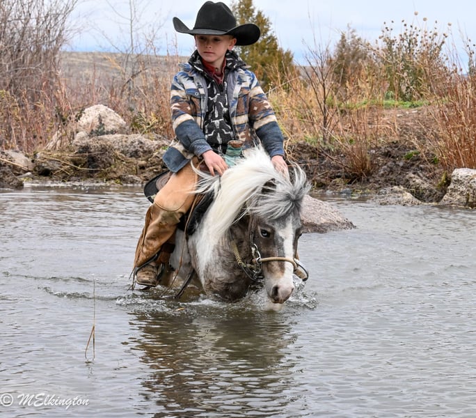 🎁 𝐈𝐍 𝐓𝐈𝐌𝐄 𝐅𝐎𝐑 𝑪𝒉𝒓𝒊𝒔𝒕𝒎𝒂𝒔 🎁 Happening now thru TUESDAY | DECEMBER 9th - Available EXCLUSIVELY on Ponybid's website! For more details and to register visit: www.Ponybid.com CONSIGNOR CONTACT: 4 Spades Ranch 208-705-6540 LOCATION: Rigby, ID BREED: Pony REGISTERED: No COLOR: Appaloosa HEIGHT: 36" AGE: 6 GENDER: Gelding Wait till you see this pony in person he’s a true looker. Aussie doesn’t just turn heads; he turns work into fun. He’s the whole package: good-minded, confident, and a genuine pleasure to ride, standing 36 inches tall and only 6 years old. Aussie is as cute as a button and handier than the pocket on your shirt. He's got one blue and one brown eye and all speckled up. He's a little Aussie puppy in a ponies body! This pony carries himself with the kind of confidence you can feel from the saddle. He’s safe, steady, and knows his job. Aussie has been used for daily ranch work, pushing cattle, trail riding, and even roping the sled. He’s been around all the commotion rodeos, kids, dogs, and chaos and takes it all in stride. He’s crosses water, carries the flag, goes over teeter-totter, and even lays down like a dog. You can shoot a BB gun off him, tie him to the trailer, or let the kids crawl all over him nothing rattles this pony. Not to mention he has the sweetest little lope too. Our boys ask a lot out of there ponies. And good ponies come from even better hands. If you’re looking for a solid, broke, and good-looking pony that’s always a top hand for his rider, Aussie is your guy.