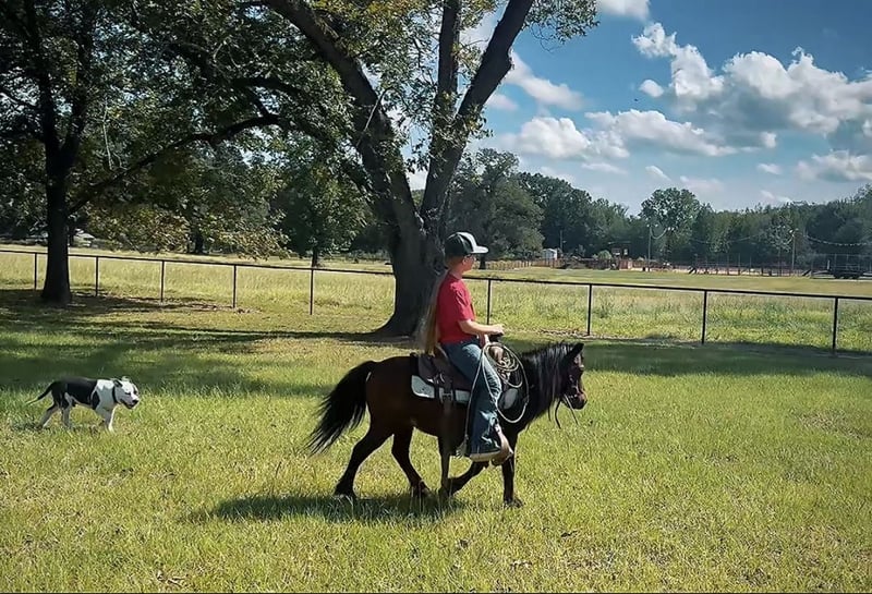 🎁 𝐈𝐍 𝐓𝐈𝐌𝐄 𝐅𝐎𝐑 𝑪𝒉𝒓𝒊𝒔𝒕𝒎𝒂𝒔 🎁 Happening now thru TUESDAY | DECEMBER 9th - Available EXCLUSIVELY on Ponybid's website! For more details and to register visit: www.Ponybid.com CONSIGNOR CONTACT: Lummus Performance Horses 903-824-2150 LOCATION: Bloomburg, Tx BREED: Miniature Pony REGISTERED: No COLOR: Bay HEIGHT: 38” AGE: 5 GENDER: Gelding “Ranchy” is a KID PONY DELUXE and he is ready just in time for CHRISTMAS!! He is a 5 yr old bay 38” tall gelding with ALL the looks and personality, look at all the mane and tail, he is the sweetest little guy in the barn! He loves the kids and loves to be groomed. Ranchy rides around good like a big horse, w/t/c and would be good for any rider. Ranchy has been a lot of miles and knows a hard days work. He is the perfect pony and goes wherever you point him. Ranchy has a REALLY good stop on him and will slide! He will also turn around correct! He has ZERO buck, bite or kick. Ranchy has drug logs, barrels, had kids/dogs running all around him, he will carry a tarp or walk over it. He’s been hauled to ropings, barrel races, jumping jumps, rodeos, working cows, dragging calves, hog hunting, swimming ponds, and been thru every aspect of the woods from thickets to boggy creeks, and trail riding down the roads. Trains honking and going by don’t bother him. He even rides ENGLISH! My kids love jumping him! We carry multiple buckets of feed strapped over his back to help carry to feed. The kids have been doctoring calves on him and he will hold a rope tight as well. They girls have been doing the barrels, poles, and roping the sled on him. Both of my girls 7 and 10 catch him by themselves, saddle, bridle, and ride him everywhere with ZERO help from an adult. He is the coolest little guy around and everywhere we go he gets ALL the attention with his cute personality and beautiful looks! He leads, loads, ties, bathes, and hauls good. Gets along with all the other big horses and minis. He’s an easy keeper. Ranchy has been my 7 yr olds personal pony for a while now. She is offering him to help teach another kiddo all the basics! ❤️