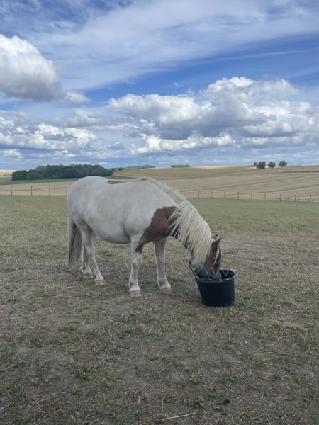 Zum Verkauf steht ein kastrierter Freizeit-Pony, geboren im Juni 2017, in Scheckung. Er lebt sowohl auf der Weide als auch im Stall, respektiert die Zäune und hat keine Angst vor anderen Tieren. Er ist ein hübsches Pony von etwa 1,05 m Stockmaß und mag Kinder sehr. Er beherrscht alle drei Grundgangarten, kennt das Putzen und gibt gut die Hufe. Impfungen, Wurmkuren und Hufpflege sind aktuell.