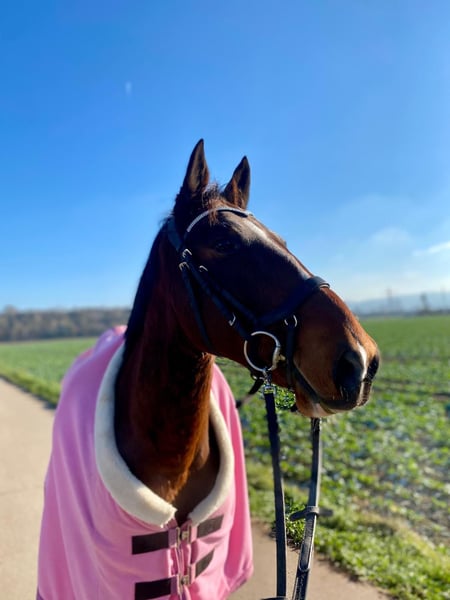 Zum Verkauf steht ein bildschöner brauner Irisch Sport Horse Mix. Benni ist 2016 geboren und hat ein Stockmaß von ca. 150cm. Er ist beim Putzen, Hufe geben Satteln und Trensen ein wahrer Schatz. Jedoch benötigt er auch hier eine erfahrene Hand, da er auch mal etwas frech werden kann und leicht knabbert. Zähne sind frisch gemacht worden, ebenso war der Hufschmied vor kurzem da. Auch hier hat er keinerlei Unarten gezeigt. Beim Reiten benötigt er jedoch eine erfahrenere Reiterin, kein Anfängerpferd. Schritt und Trab ist kein Problem, jedoch muss sein angaloppieren auf der linken Hand noch ausgebaut werden. Er ist leicht schreckhaft, jedoch zu jederzeit gut händelbar.