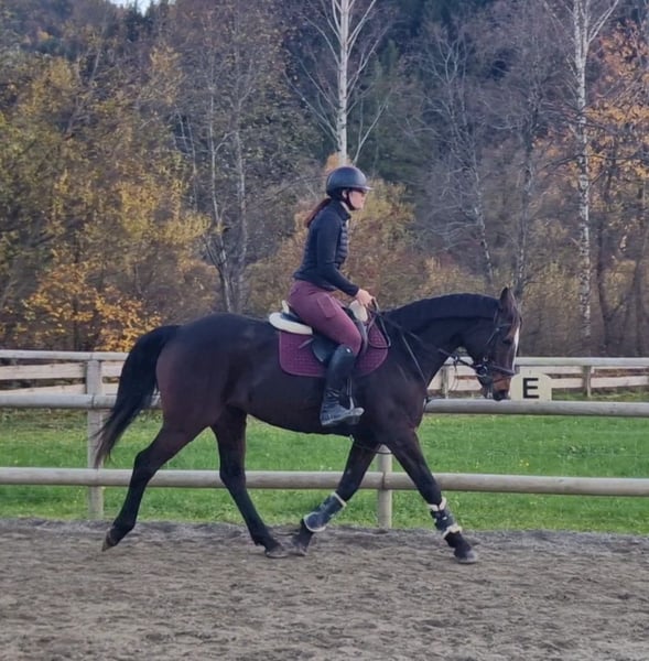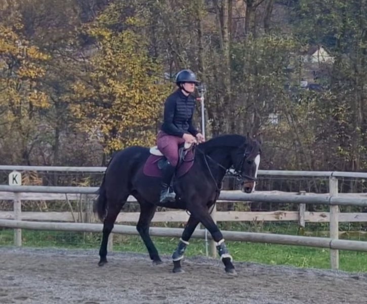 ✨ Dream Mare – Irish Sport Horse, Well-Ridden & Beautiful ✨ Breed: Irish Sport Horse Gender: Mare Born: 2016 Height: approximately 16.0 hh Color: Dark Brown with a charming blaze Milli is a stunning, rideable mare that immediately captivates with her harmonious conformation and lovable nature. She excels in dressage at a very good novice level, responds delicately to aids, and offers soft, comfortable gaits that make every ride a pleasure. She is easy to ride, always attentive, motivated, and has plenty of go – a true dream horse for experienced riders who enjoy fine riding. In addition to dressage, she enjoys going over poles and is extremely well-behaved, brave, and reliable in the field. She is comfortable crossing water, knows small cross-country jumps, and has also been used for hunting in Ireland. Whether alone or in a group, she remains calm and confident. In handling, she is simply a sweetheart – impeccable character, easy to shoe (front hooves shod), loading well, and free of vices. She is in excellent health, with no restrictions or special needs. A pre-purchase exam can be arranged at any time. She is familiar with both open stable and box stall housing and is suitable for both. Her complete tack can also be purchased at an additional cost. Transportation can be organized if needed. If our lovely mare has caught your attention, we look forward to hearing from you and arranging a personal meeting.