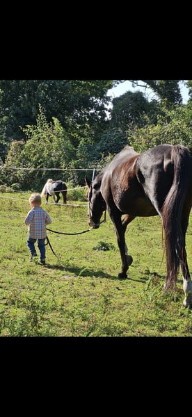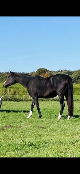 This beautiful black Irish Sport Horse mare is looking for a new, loving 5-star home. Details: - Black - Mare - 10 years old - Low in the pecking order - Approx. 15.5 hh - Shoed at the front - Healthy - Ridden recreationally - Calm and willing She is seeking a home within a very small herd, as she is extremely low in rank and cannot find peace otherwise. An optional stable at night would also suit her well. The reason for her rehoming is that she doesn't fit into my herd. My mares constantly chase her away from the feed and do not allow her to rest. She has been on pasture for the past 8 months and currently needs to be re-started under saddle. She is clear-minded, sweet, and easy to handle. At the moment, she is kept separately, but this is not a long-term solution for her or us. She will only be placed in proven good hands, not with dealers or riding schools. If interested, please contact me. I am happy to send videos of her training, trail riding, and more via WhatsApp.