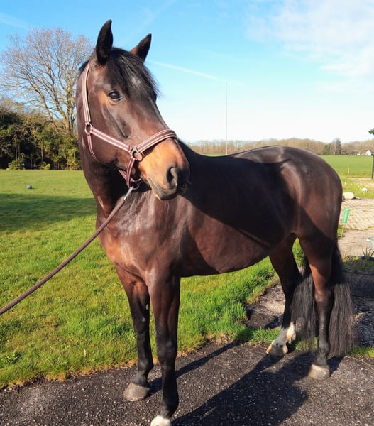 Mooi allround sport- recreatiepaard. Geslacht: merrie Leeftijd: 11 jaar Stokmaat: 1.77 m Afstamming onbekend. De merrie is L2 dressuur geklasseerd met winstpunten. Maakt ook een leuke sprong, is hierin niet geklasseerd of uitgebracht. Zou gezien haar bouw ook zeker niet misstaan in de eventingsport. Paard is braaf op vreemd terrein en ook buiten in het bos of verkeer. Is NIET geschikt voor beginnende ruiter, heeft baat bij een ervaren ruiter die met gevoel kan rijden. Keuren toegestaan, op kosten koper. Foto´s en filmpjes op aanvraag bij serieuze interesse.