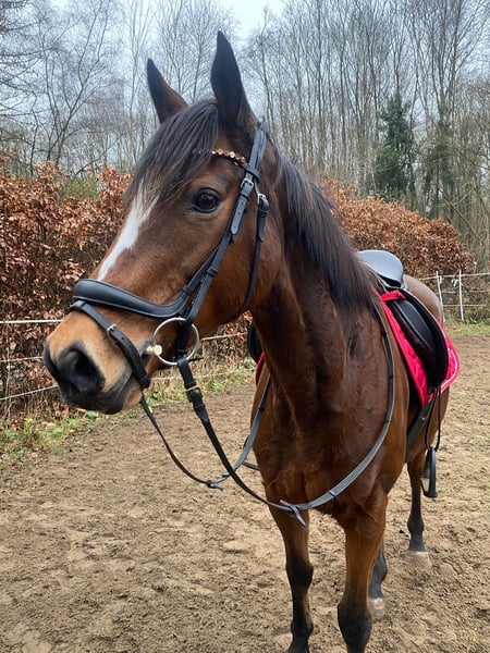Beautiful large mare with an excellent character. From a herd reduction. She is 11 years old and well-trained under saddle. She also rides calmly alone in the field. An absolute eye-catcher and very well-behaved. She is familiar with both stable and open stall management. Standing around 16.0 hh, she comfortably covers the rider.