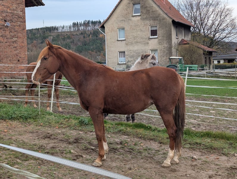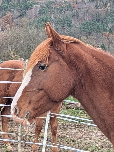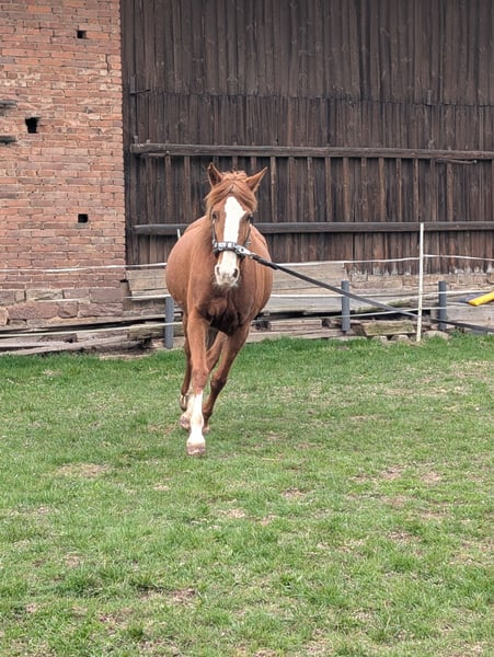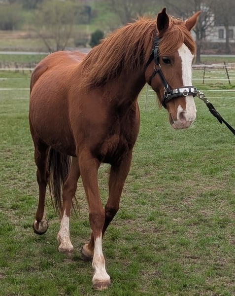 Zum Verkauf steht eine 13-jährige irische Fuchsstute, die aufgrund von Zeitmangel abzugeben ist. Carty hatte hier ein Fohlen, zu sehen auf dem ersten Bild. Sie wurde bisher wenig geritten, kennt jedoch Bodenarbeit sowie Longe und Doppellonge. Im Gelände zeigt sie sich als Handpferd routiniert. Charakterlich ist sie als eher sensibel einzustufen, im Offenstall ist sie eher rangniedrig, Carty ist brav beim Hufpfleger und lässt sich gut verladen. Sie ist regelmäßig geimpft und entwurmt.
