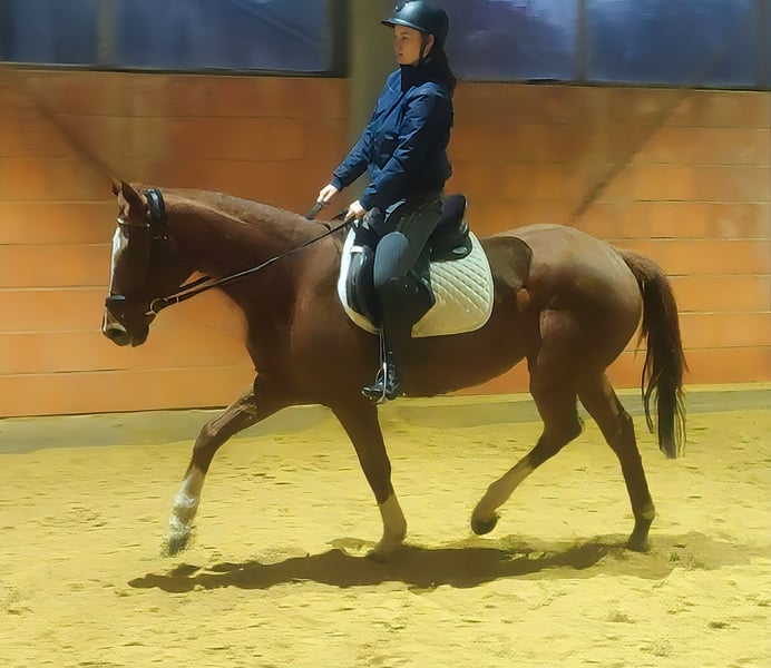 Sweet approximately 15-year-old mare, about 16.1 hh, with beautiful movement. Comfortable to ride and easy to sit. She is familiar with tractors, trucks, and other vehicles. In her herd, she can be somewhat reserved but quickly integrates and is always eager to make new equine friends. Well-bred and also registered as a broodmare. Suitable for caring owners and happy to be placed with companions. If desired, she can be sold with a complete set of new tack at a small additional cost. Transportation can be arranged. A veterinary pre-purchase exam, including X-rays and blood tests, can be performed by your own veterinarian if preferred. We need to make space, so this very affordable offer is aimed at quick decision-makers. We look forward to your call at 01774289729. Written inquiries will not be answered.