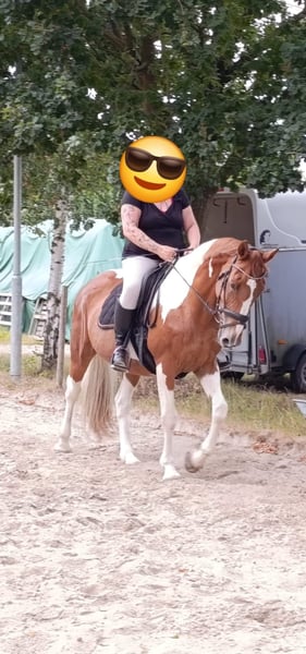 Please do not just click "Heart," but write to us! Unfortunately, we have to part with my 16.1 hh mare, as it no longer seems to be the right fit between us. She needs a consistent handler who is willing to assert herself when necessary. She loves jumping, but also shows willingness in dressage! However, she can be quite temperamental at times, especially if things don't go her way (under saddle), such as when asked for lateral movements or when she tends to lean on the bit. She has a very strong character! She is 15 years old and an Irish Sport Horse. She is gentle and well-behaved with children. My kids (ages 11, 5, and 3) have occasionally ridden her. She has front shoes. She is fully vaccinated and dewormed. If you'd like to get to know her, we would be very happy to hear from you. For a trial ride, I ask for €30, which will be deducted from the purchase price. She is by no means aggressive—she does not bite, kick, buck, or rear!