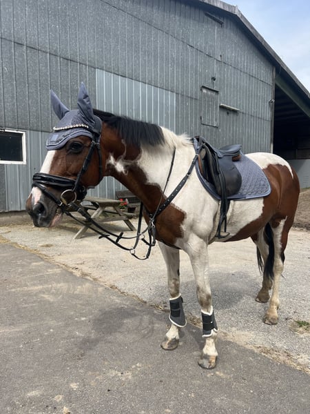 Miss Dakota (15 ans) est une jument douce et câline, qui cherche actuellement un nouveau foyer adapté. Lorsqu’on la côtoie au quotidien, elle se montre très proche des humains et fiable. En travail à la longe ainsi qu’en dressage, elle travaille avec attention et motivation, tout en restant facilement manipulable. En extérieur, elle est une partenaire de confiance, se montrant détendue et sage en groupe. Sous la selle, Miss Dakota nécessite une conduite ferme et claire. Ce n’est pas une jument adaptée aux enfants ou aux débutants, car elle a besoin d’un cavalier expérimenté et sûr de lui, capable de lui donner des repères. Avec la bonne personne à ses côtés, elle révèle tout son potentiel et procure beaucoup de plaisir lors du saut d’obstacles. Elle s’épanouit particulièrement dans cette discipline, montrant enthousiasme et talent. Miss Dakota est une jument fidèle, volontaire et dotée d’un grand cœur, qui recherche un partenaire qui la comprenne et la valorise. Son selle est en cours de vente, il n’est donc pas possible de faire un essai actuellement, mais elle sera vendue avec divers accessoires. Elle a 15 ans et mesure 1,57 m. Ce n’est en aucun cas une vente d’urgence, je souhaite simplement lui offrir un foyer aimant où elle sera vue et appréciée. Pour toute question ou intérêt, n’hésitez pas à me contacter.