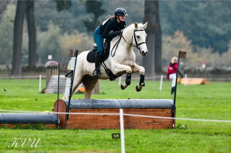 Talented, cool 3-year-old mare (2022) with ISH pedigree, fully RX approved without remarks. We have owned her since foal, so her entire history is known. Dunguaire Lola was backed at the beginning of August, has already gained her first cross-country experience, and shows great potential for this discipline. She has a powerful jump, moves beautifully, and has a brave character. 👌 Perfect for eventing! She has also already competed in one show jumping class at 70 and 80 cm! She is fully ready to return to work after a well-deserved break. She travels very calmly. Lola is a very sweet horse, calm in handling, and very sensible. She didn’t put a foot wrong during backing, and she continues to process all new impressions exceptionally well. Lola has been trained in a gentle manner, with no whip or spurs, so she genuinely enjoys her work. She moves on her own legs and already has good balance for being only three years old. If you’re looking for your next eventing talent in a lovely package, feel free to come and test her! She can also easily serve someone coming from ponies because she is so well-behaved. Lola is located in Nederhasselt (Ninove) and can be tested by appointment. We would love to see Lola go to an ambitious person with a heart for and knowledge of horses. After her third eventing competition in Meldert on 02/11, Lola is now turned out in a pasture and will no longer be worked. We believe she has earned her rest more than enough. Lola is currently 1.57 m (16.1 hh), but is expected to reach 1.60 m (15.3 hh) when fully grown. The mare in the photo is 1.71 m (16.3 hh).