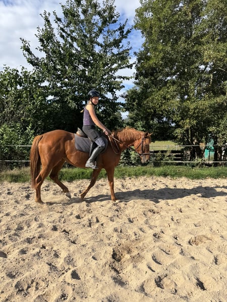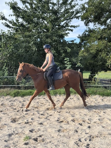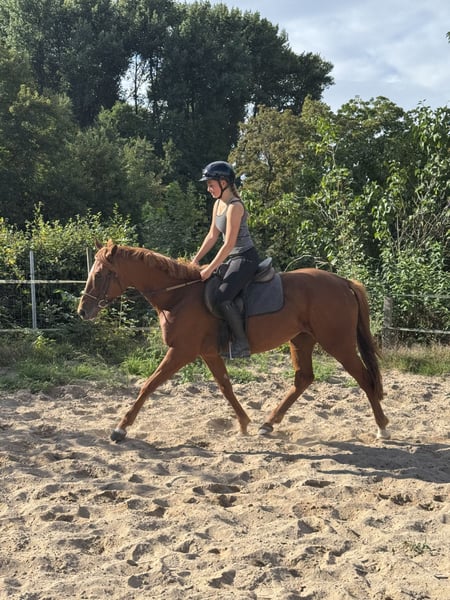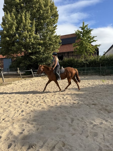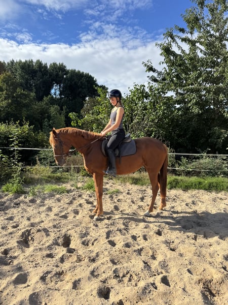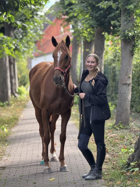 La bella Lisa LOU, chiamata semplicemente Loui, ha tutte le possibilità nel settore del tempo libero. È una cavalla trottatrice di tipo da equitazione, correttamente montata, e si è dimostrata molto collaborativa. In pista non ha mai gareggiato. Attualmente si trova in addestramento per un ulteriore consolidamento, in particolare del galoppo. Ora cerca il suo nuovo partner per il tempo libero, che la sosterrà per affrontare insieme le sfide. Nonostante la sua età, presta molta attenzione al suo cavaliere e desidera sempre fare tutto nel modo giusto con il suo carattere unico; penso che sia adatta anche per principianti che vogliono crescere insieme a Loui. È facile da gestire, leggera da montare e presta molta attenzione ai comandi vocali durante il lavoro. Non sono note limitazioni sanitarie, è esente da eczema e non è a rischio di coliche. Loui non è spaventata, conosce il traffico stradale, i camion e le macchine agricole. È socialmente compatibile nel branco, conosce il maniscalco ed è abituata al trasporto in trailer. L'attrezzatura adatta può essere acquistata a un prezzo conveniente, così come un bel buggy per 550 euro. In caso di interesse serio, chiedo di contattarmi esclusivamente telefonicamente al numero 0172/5110102.