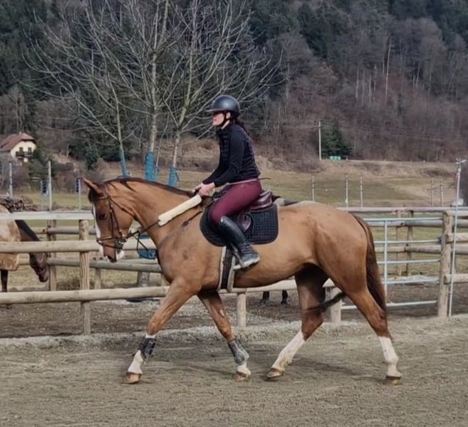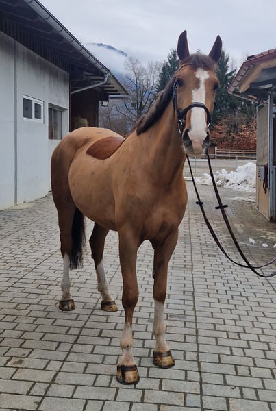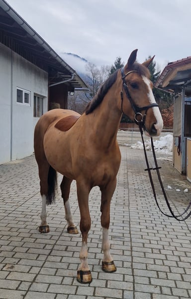 Zum Verkauf steht eine 5-jährige Stute, Irisches Sportpferd, mit einem Stockmaß von 168 cm – eine vielversprechende Nachwuchsofferte für den Sport oder ambitionierten Freizeitreiter! Diese schicke Stute überzeugt durch ihre Rittigkeit und Übersicht. Sie ist fein an den Hilfen, dabei stets klar im Kopf und angenehm ruhig zu reiten – eine Kombination, die sie besonders interessant für ambitionierte Reiter, sowohl für Freizeit und Sport macht. Altersentsprechend ist sie solide dressurmäßig gearbeitet, zeigt eine gute Grundqualität in den Bewegungen sowie eine konstante Anlehnung. Am Sprung präsentiert sie sich mit Vermögen, Übersicht und sauberer Technik. Sie springt brav, mit positiver Einstellung und zeigt dabei deutliches Entwicklungspotenzial für den gehobenen Spring- oder Vielseitigkeitssport. Im Gelände ist sie absolut souverän – sowohl alleine als auch in der Gruppe. Sie ist nicht schreckhaft, zeigt sich nervenstark und leistungsbereit. ✔️ 5 Jahre, 168 cm ✔️ sehr brav und ausgeglichen ✔️ fein und angenehm zu reiten ✔️ Springvermögen mit Perspektive ✔️ geländesicher & nervenstark ✔️ gesund, ohne Unarten ✔️ klinische AKU ohne Befund liegt vor Ein qualitätsvolles Nachwuchspferd für Reiter mit sportlichen Ambitionen, das bei weiterer Förderung sein volles Potenzial im Spring- oder Vielseitigkeitssport entfalten wird. Gleichzeitig bringt sie alle Voraussetzungen für ein anspruchsvolles Freizeitpferd mit. Anfragen bitte mit kurzer Vorstellung. Probereiten nur bei ernsthaftem Interesse! Videos werden gerne auf Anfrage versendet, ihr komplettes Zubehör kann ebenso erworben werden und ein Transport kann organisiert werden!