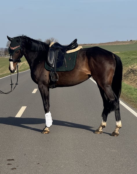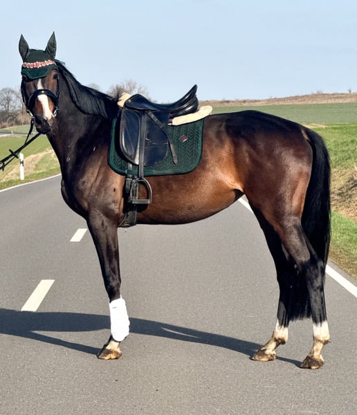 Wir verkaufen diese tolle Stute im Auftrag, da die Besitzerin krankheitsbedingt ausfällt. Marbella ist eine fünfjährige Stute, die dem Menschen sehr aufgeschlossen ist. Sie verfügt über sehr schöne Grundgangarten und wir können sie uns sowohl in der Dressur als auch im Springen gut vorstellen. Ihr Stockmaß beträgt ungefähr 1,64 m. Sie hatte zuletzt etwas Pause, da die Besitzerin krankheitsbedingt ausgefallen ist, wird aber momentan wieder antrainiert. Daher befindet sie sich noch im Muskelaufbau. Wir wünschen uns für sie ein schönes Zuhause, in dem sie weiterhin gefördert wird. Bei ernsthaften Interesse schicken Sie gerne Ihre Telefonnummer und wir klären weiteres bei einem netten Telefonat