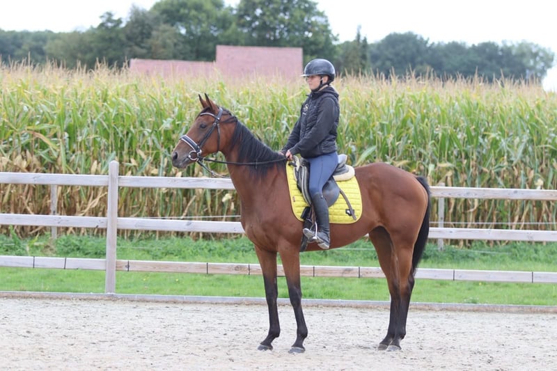 ✨ Lady – 8-jährige Stute, 1m60 ✨ Lady ist ein freundliches und unkompliziertes Pferd im Umgang. Unter dem Sattel ist sie einfach zu reiten und daher ein ideales Freizeitpferd. Sie liebt es, zu springen, geht gerne ins Gelände und passt sich leicht an. Außerdem ist sie sozial und versteht sich sehr gut mit anderen Pferden. Ein ideales Pferd, um noch viele Abenteuer zu erleben. 👉 Alter: 8 Jahre 👉 Geschlecht: Stute 👉 Stockmaß: 1m60 Mehr Informationen oder Videos? Besuchen Sie unsere Website oder rufen Sie an unter +32 475 68 22 43.