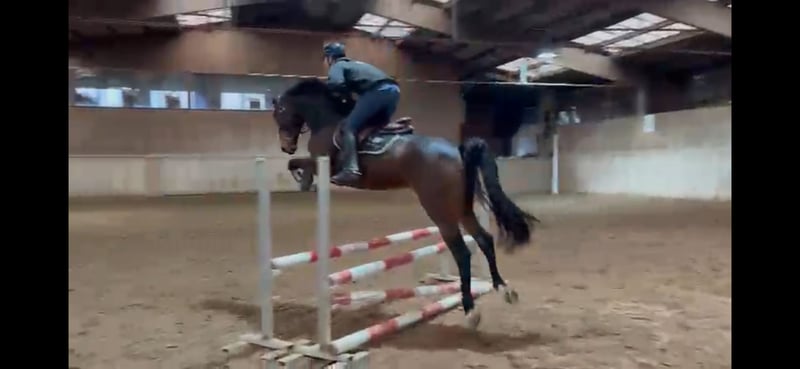 Carmen is a stunning 7-year-old mare. In the photos, she is the mother. Since she has primarily been used for breeding so far, she is still very fresh. This summer, she completed her first show jumping tests and shows great potential, although she is still very green in jumping. She also enjoys going out for rides, but so far mostly with a companion or in a group. She is still very suitable for breeding; after all, she has already given birth to two beautiful foals.