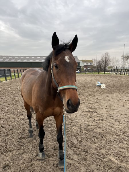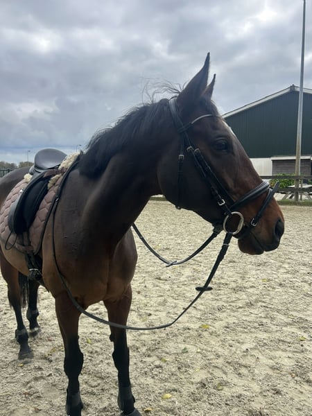 Ivana, registered under the passport name My Lucky Penny, is a very sweet mare. She has a lot of potential and learns quickly. As a Thoroughbred sport horse, she is very forward-moving, which means she requires plenty of exercise. She performs all gaits very neatly. However, she needs an experienced and confident rider. When properly handled, she is an honest and pleasant ride! She also enjoys jumping over fences from time to time and does this exceptionally well. She is very gentle in her interactions, easy to groom, tack up, and handle in the stable. She loads easily onto the trailer and adapts well to new environments. When I purchased her, she was professionally vetted. Since then, quite a bit has changed in her body — in a good way. Her hooves are now well-maintained, and she recently had her teeth checked by the veterinarian, so she is fully up-to-date. The vet mentioned that she has a very good set of teeth and that an annual dental check-up is sufficient. Unfortunately, I have to part with her due to personal reasons. Therefore, I am looking for someone who can continue to develop Ivana and dedicate time to her! Recently, I purchased a saddle that has been fully custom-fitted to her shape. It is less than two months old. The saddle could be sold together with her, and the price can be discussed.