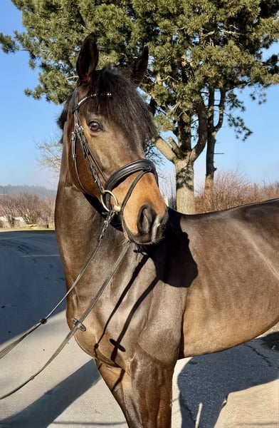 Easy ist eine super liebe sechs jährige, 163 cm große Stute. Sie steht sehr fein an den Hilfen und bewegt sich sehr gerne. Easy springt auch gerne und geht auch brav ins Gelände! Selbstverständlich ist die Stute gesund. Weitere Infos und Videos gerne per WhatsApp oder telefonisch unter: 00436603632373 Standort: Pelmberg 15/ OÖ Besichtigung und Probereiten gerne nach Terminvereinbarung! Der Transport des Pferdes kann gerne übernommen werden