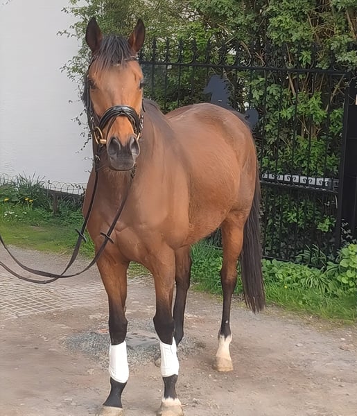 Polli is a 10-year-old, approximately 16.1 hh gelding with a wonderful temperament. He has already achieved numerous successes in sport. He is easy to handle. Under saddle, he is both attentive and straightforward in dressage work as well as jumping. He also enjoys pleasing demanding leisure riders or fox hunters. He is extremely comfortable to sit on, making him suitable for riders with back issues. Polli has also been ridden successfully by young girls. A veterinary pre-purchase exam has been carried out at a reputable clinic with a clean result. We are looking for a good home for Polli with turnout and companionship, so a reasonable price (priority over cost). If desired, he can be sold with a complete set of new tack for a small additional fee. Transportation can be arranged. We look forward to your call at 015172059610. We do not respond to written inquiries.