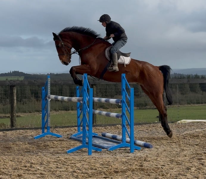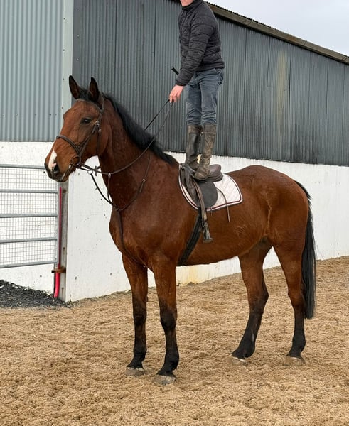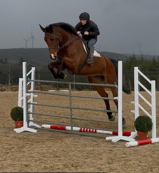 Sherman, a stunning Irish Sport Horse of exceptional size. Standing at an impressive height of approximately 16.2 to 16.3 hh, he makes a commanding presence, but behind that remarkable stature lies a gentle and honest character. He is a 10-year-old gelding. Sherman is a true sweetheart in handling. Even the smallest child can do everything with him – he is so well-behaved and reliable. Under saddle, he also shows his best side: he is calm to ride and possesses an exceptional jumping ability. Distances? They seem to pose no problem for him. He jumps with ease and confidence, regardless of what is asked of him. Outside the arena, Sherman is a dream. On walks, he is very well-behaved, even when ridden alone. Tractors, barking dogs, or other distractions? He remains calm and passes everything without issues. An honest horse you can truly count on. In the pasture, he is social and gets along well with other horses and ponies, making him a great companion. Like any top horse, Sherman has a small area for improvement. Due to his large size, he has likely bumped his head in the past, which is why he is somewhat sensitive to having his ears touched. This is currently being addressed with professional guidance, and progress is clearly visible. Putting on the bridle requires a slightly adapted approach. Additionally, he has a mild form of roaring. Sherman is undoubtedly a special horse – a gentle giant with talent, honesty, and a heart of gold. Interested in more information about this exceptional horse? 📞 0032475682243 🎥 For videos: ask for our website